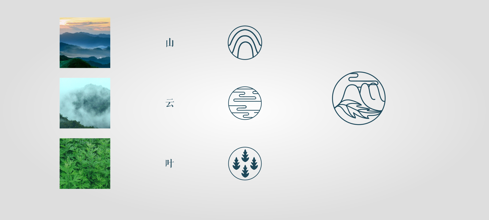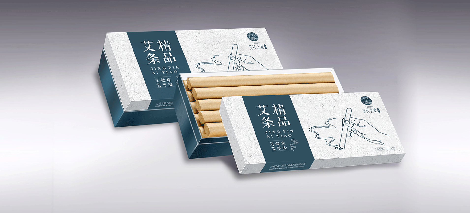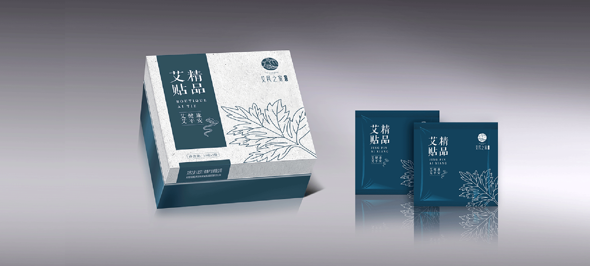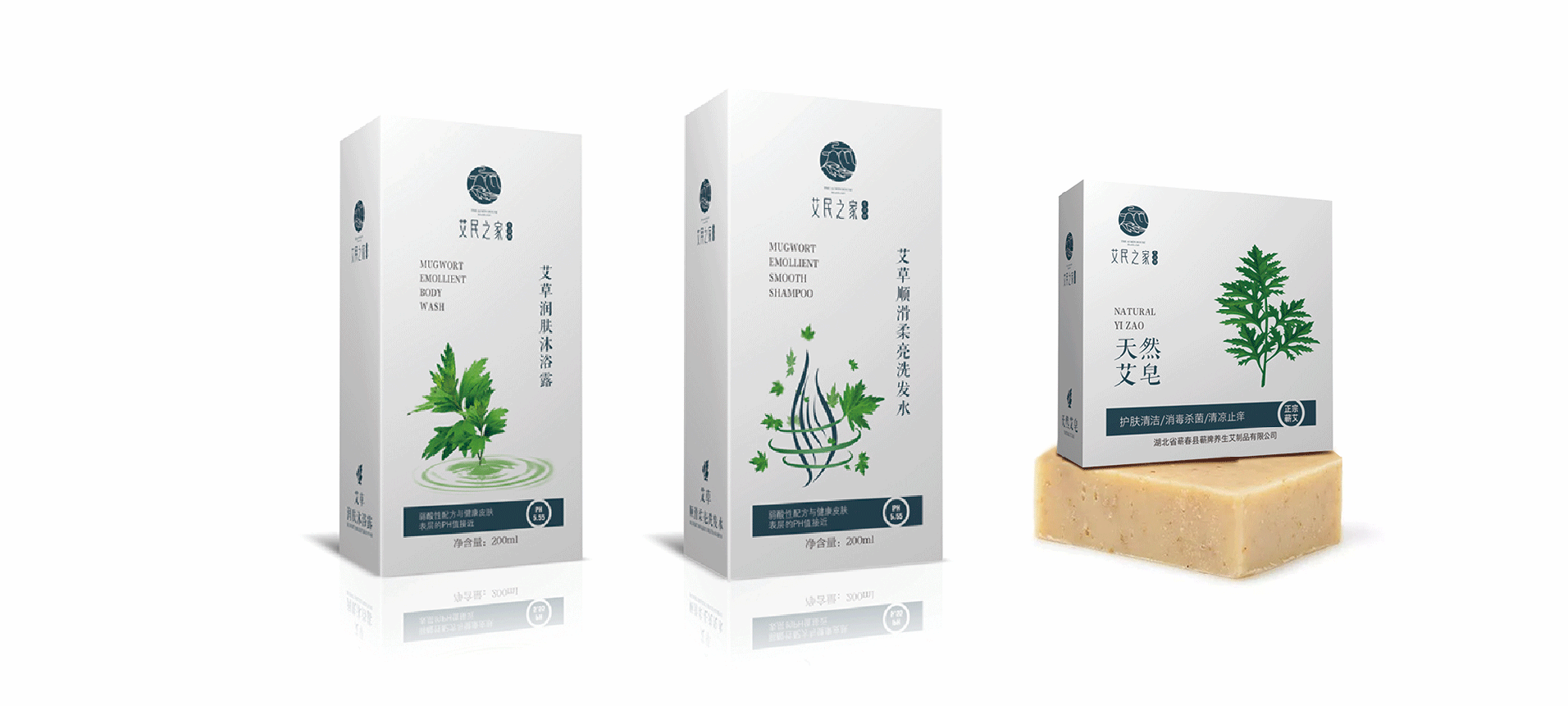 我們首先給艾民之家品牌做了定位——中高端的健康禮品,宣傳送禮送健康的概念。基于這個基本定位,在品牌產品中為了滿足功能上的需求設計了四款產品包裝。其次設計了艾民之家的品牌LOGO,LOGO將中國傳統國畫中的山、云、葉的符號通過現代創意設計手法,展現了蘄艾來自大自然,來自祖國傳統醫學寶庫。